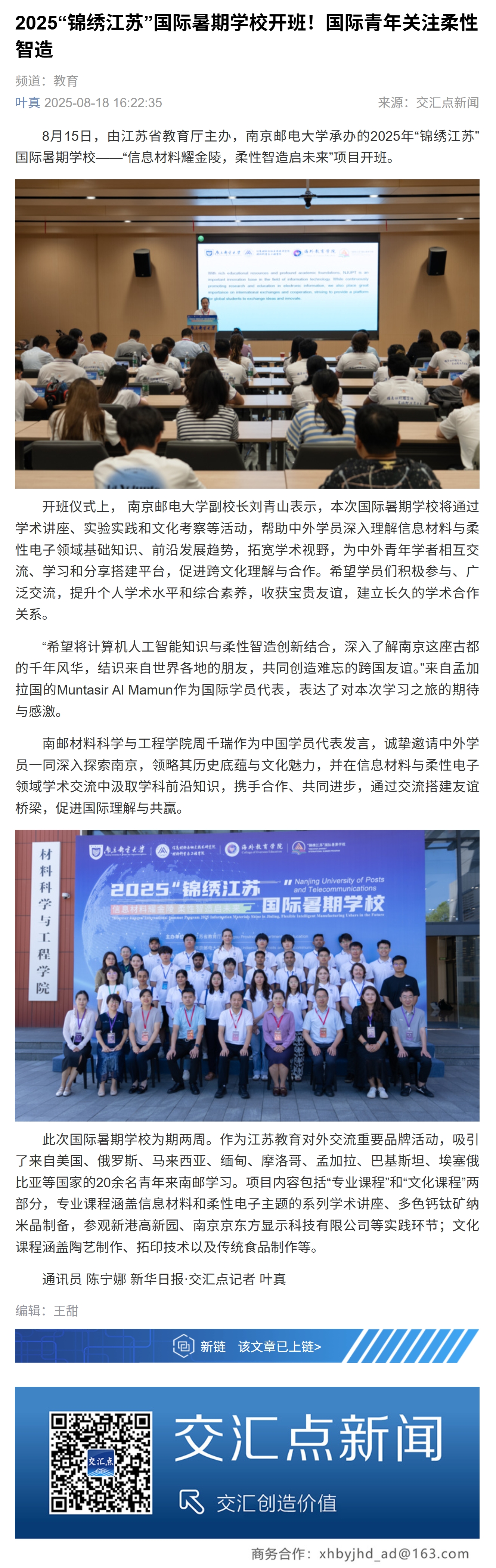 【新华日报客户端】2025“锦绣江苏”国际暑期学校开班!国际青年关注柔性智造