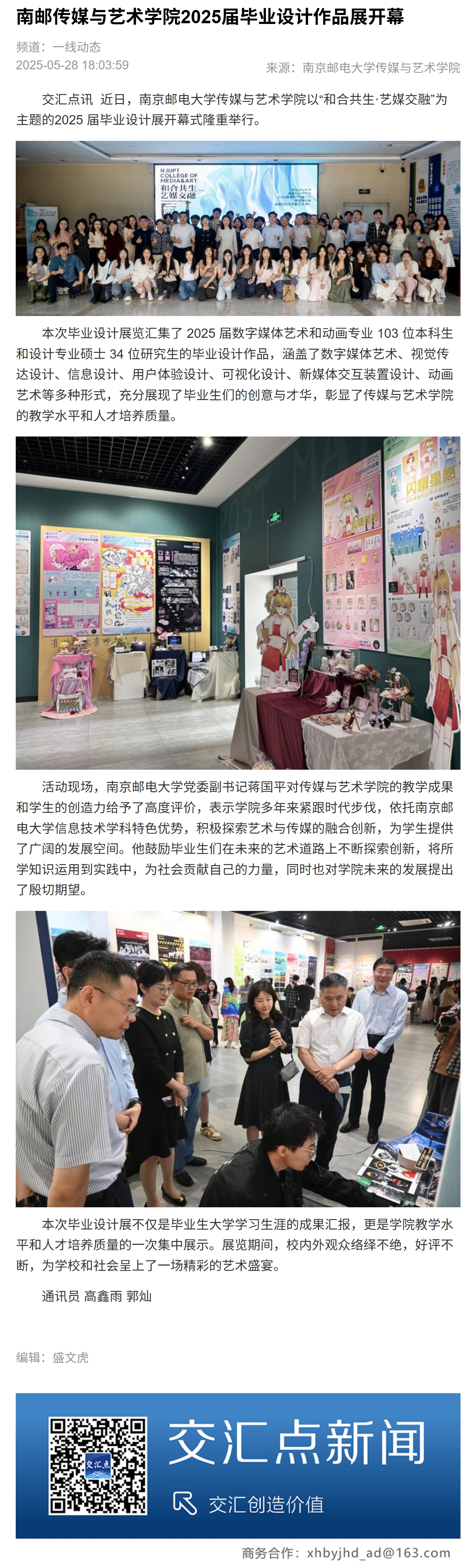 【新华日报客户端】南邮传媒与艺术学院2025届毕业设计作品展开幕
