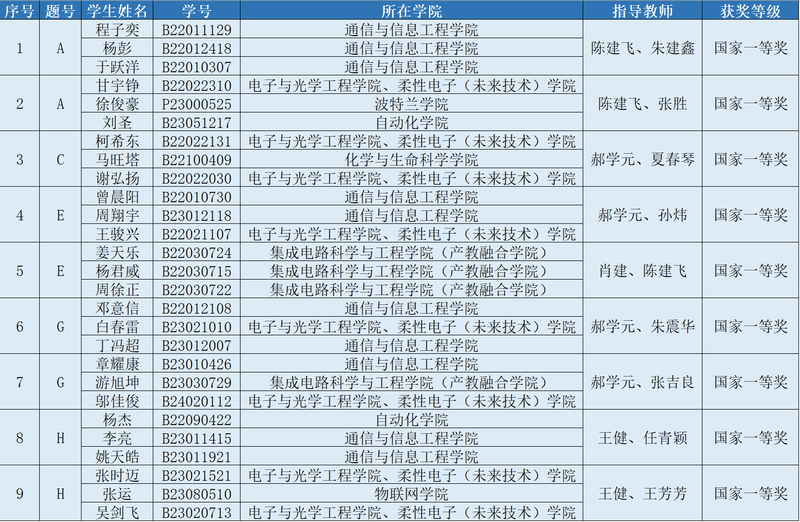 南京邮电大学2025年全国大学生电子设计竞赛国家一等奖获奖名单
