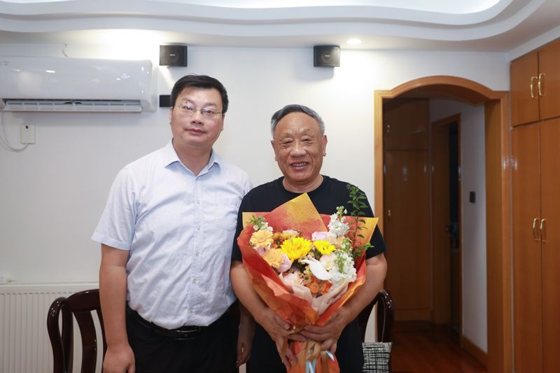 在曹伟教授家中,郭宇锋关切询问他的身体状况,介绍了学校近期在学科建设、人才培养、科学研究等方面取得的新进展与新成就,并认真听取曹教授对学校发展的意见建议。他说,“学校今日的发展壮大,凝聚着像曹教授这样一代代老教师们的心血与智慧,学校将用心用情做好退休老教师的服务保障工作”。曹教授对学校长期以来的关心照顾表示由衷感谢,他深情回顾在校工作期间的难忘岁月,表示将发挥余热,继续关注和支持学校工作,为学校高质量发展积极建言献策。