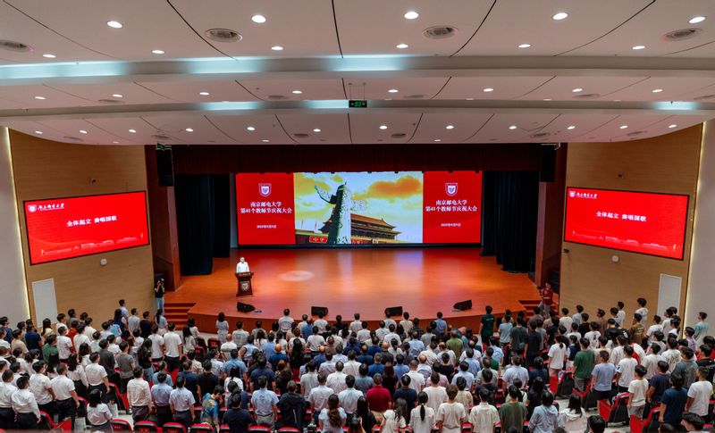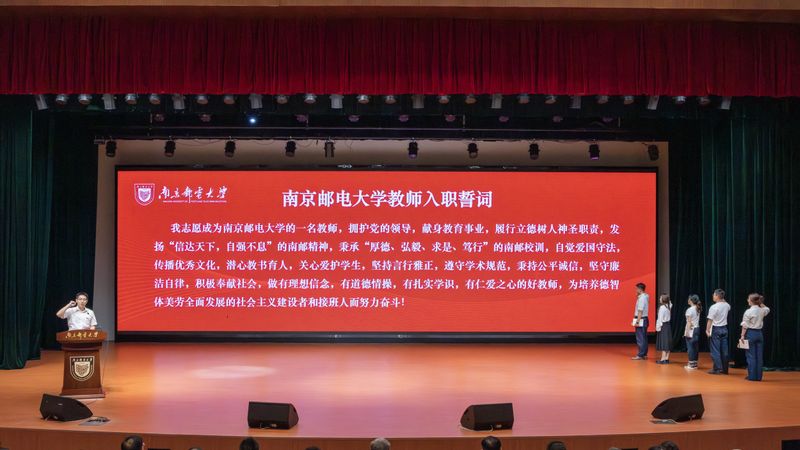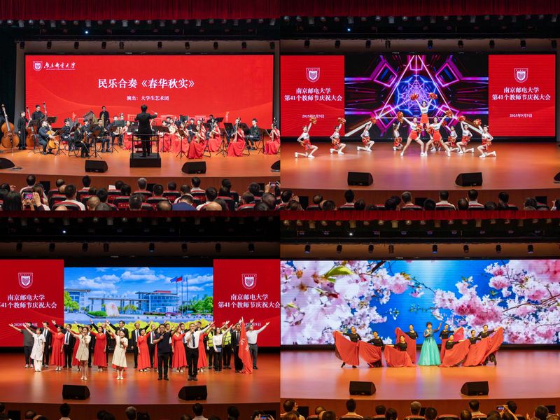 炎夏将尽,金风送爽。9月9日下午,南京邮电大学在仙林校区安恒青春剧场召开第41个教师节庆祝大会。校党委书记郭宇锋,校长叶美兰,省纪委监委派驻南京邮电大学纪检监察组组长、校党委常委、纪委书记、二级高级监察官周和林,校党委常委、副校长肖甫,校党委常委、副校长刘青山,校党委常委、副校长谢平,校党委常委、副校长周亮,荣休教职工,从教满30周年教职工,近一年新入职教职工,各职能部门、二级学院负责人,教师代表、学生代表等出席。校党委副书记蒋国平主持大会。