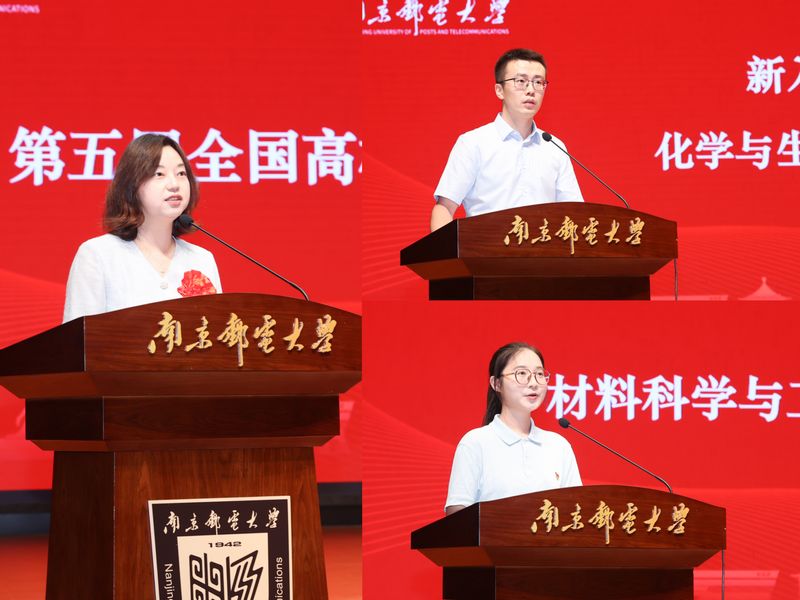 材料科学与工程学院2022级本科生高其雅,化学与生命科学学院新入职教师王子潇,第五届全国高校教师教学创新比赛新文科正高组二等奖、江苏省教师教学创新比赛特等奖获得者、管理学院教师王娟分别发言。