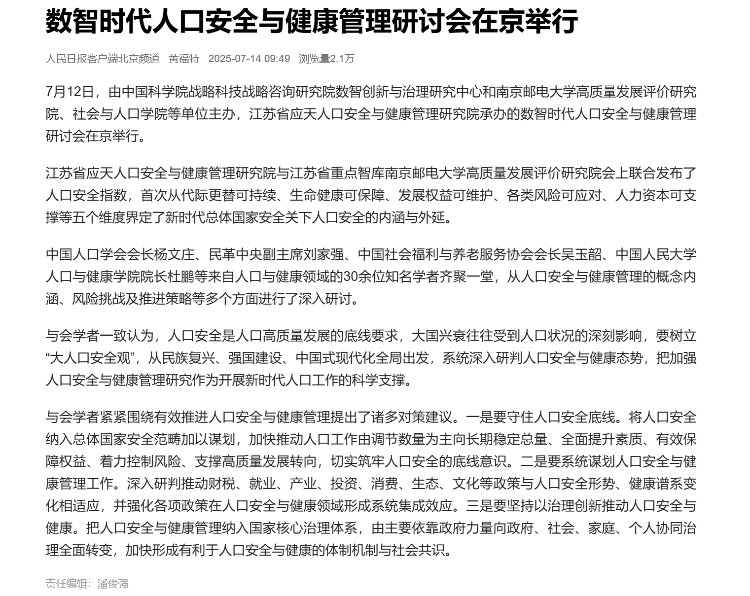 【人民日报客户端】数智时代人口安全与健康管理研讨会在京举行
