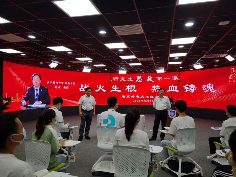 赓续红色血脉,培育时代新人。9月23日,校党委刘陈书记以《战火生根 热血铸魂》为题主讲“思政第一课”。他从“学史铸魂:学习南邮校史的重要意义”“南邮发源:抗日战争时期的战邮干训班”“数易校名:在解放战争中辗转壮大”“定址南京:结束8年的战争岁月办学历史”“赓续精神:继承和发扬南邮的红色基因”五个部分,用一个个鲜活的人物故事生动详实地讲述了学校红色校史,寄语研究生要铭记学校“为党育人、为国育才”的使命之“根”,继承和发扬学校“信达天下,自强不息”的初心之“魂”,珍惜学习时光,树立远大理想,胸怀报国之志,勇担时代使命,敢于主动创新,让青春在为祖国、为民族、为人民、为人类的不懈奋斗中绽放绚丽之花。