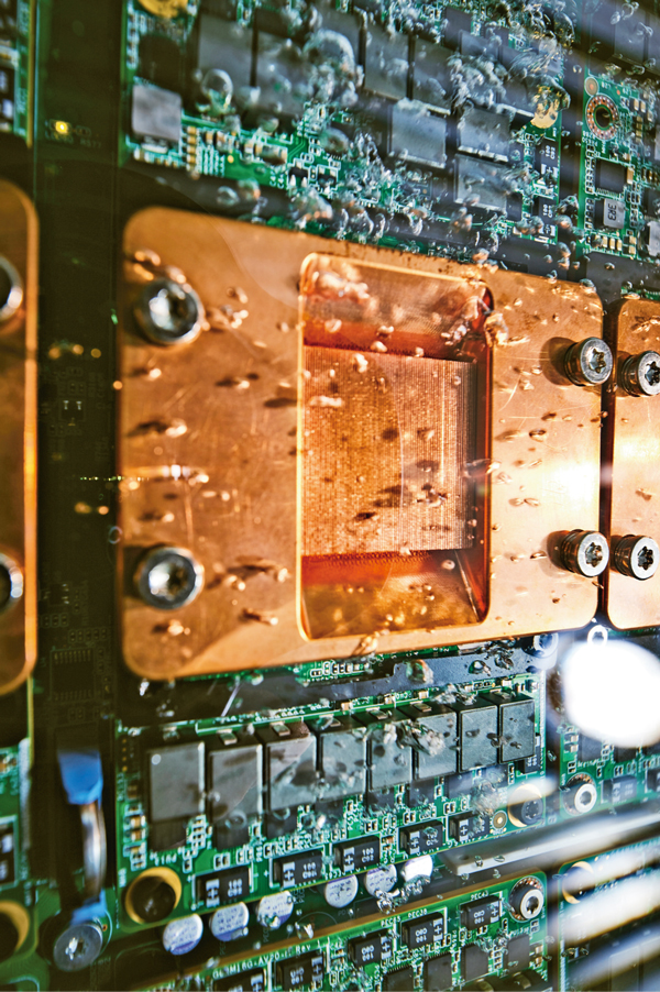 数字经济对经济社会的引领带动作用日益凸显。图为2021年11月拍摄的液冷计算节点,能够将数据中心能效比PUE降至1.1以下,比传统风冷技术节电20%。中国科学院供图