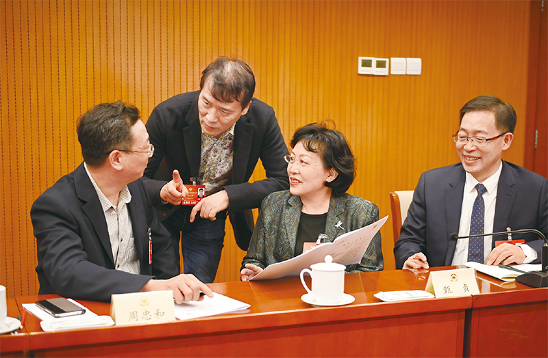 2022年3月5日,无党派界别的四位委员围绕政协常委会工作报告中提到的“推动广大政协委员更好成为党的政策宣传员、思想政治引领员、界别群众贴心人”展开热烈讨论。 人民政协报记者 齐波/摄