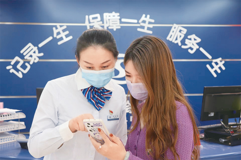 作为民生保障安全网,社会保障能够保障人们在年老、失业、患病、工伤、生育时的基本收入和基本医疗不受影响,消除后顾之忧。图为天津社保中心武清分中心工作人员正协助参保人员办理养老保险关系转移接续。 中国社会保障杂志社供图 薛长杰/摄