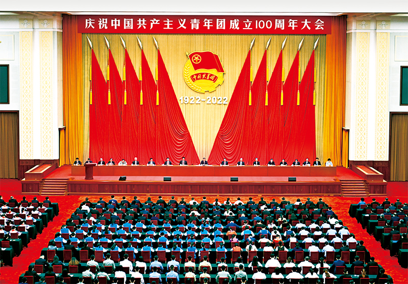 2022年5月10日,庆祝中国共产主义青年团成立100周年大会在北京人民大会堂隆重举行。 新华社记者 翟健岚/摄