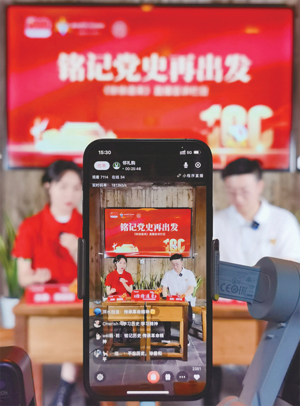 浙江省衢州市“8090新时代理论宣讲团”是一支由“80后”、“90后”年轻群体组成的宣讲队伍,他们深入企业、农村、机关、校园、社区、网络直播间等,用年轻人的视角和表达方式宣讲党的创新理论,得到广泛好评。图为2021年6月30日,宣讲团成员正在进行题为《铭记党史再出发》的线上宣讲。 浙江省委宣传部供图 童玲/摄