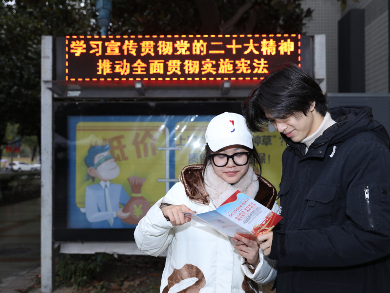 今年是我国现行宪法颁布实施40周年,12月4日是我国第九个国家宪法日。为全面贯彻落实党的二十大精神,推动全面贯彻实施宪法,普及师生法治意识,营造“尊崇宪法、学习宪法、遵守宪法、维护宪法、运用宪法”的校园法治氛围,宣传部、法制办公室在国家宪法日当天开展了以“学习宣传贯彻党的二十大精神,推动全面贯彻实施宪法”为主题的国家宪法日宣传活动。