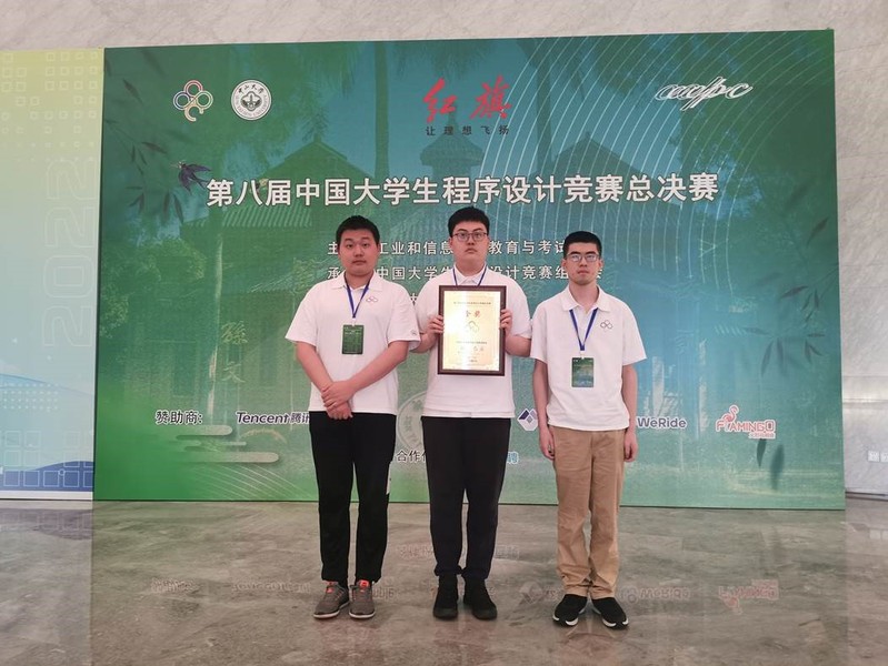 5月14日,第八届中国大学生程序设计竞赛(CCPC)总决赛在中山大学落下帷幕。我校计算机学院、软件学院、网络空间安全学院2020级本科生陈以信和贝尔英才学院2020级本科生何乐晗、赵一舟组成的代表队荣获金奖,这是我校学生连续三届获得CCPC总决赛最高奖。