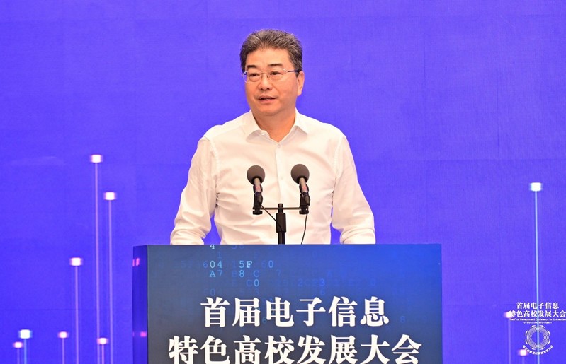教育部党组成员、副部长吴岩在致辞中对首届电子信息特色高校发展大会的重要意义给予高度评价,对八所电子信息特色高校的各项工作给予充分肯定。吴岩表示,面对“强国建设、教育何为,教育强国、高校何为”这一时代重大课题,高校要认真贯彻落实习近平总书记重要讲话精神,切实增强建设高等教育强国的紧迫感和主动性,充分发挥高等教育龙头作用,聚焦有组织加强拔尖创新人才培养、有组织推进科技创新、有组织服务国家和区域经济社会发展等“三个有组织”,有效推动科研组织方式、团队建设、平台建设、支撑保障等模式的“四个转变”。电子信息特色高校要主动瞄准世界科技前沿和国家重大战略需求,不断适应科技创新和产业变革,通过一流核心课程、一流核心教材、一流核心实践和高水平教师团队建设,为提升人才培养质量夯实基础。要通过拉长长板、补齐短板、锻造新板,为支撑引领高水平科技自立自强、实现高质量发展提供重要人才支撑,在教育强国建设的新征程中做出新的更大贡献。