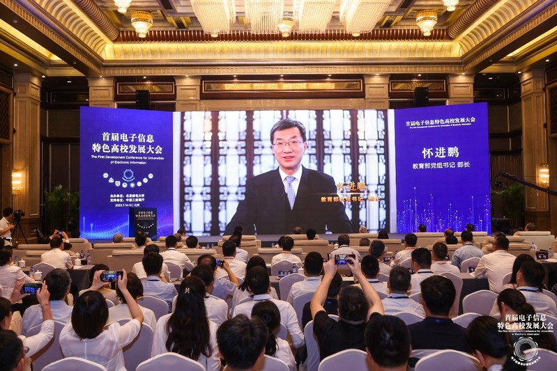 7月14日,首届电子信息特色高校发展大会在北京开幕。本届大会由北京邮电大学、南京邮电大学、重庆邮电大学、西安邮电大学,电子科技大学、西安电子科技大学、杭州电子科技大学、桂林电子科技大学共同发起,由北京邮电大学主办。会上,八所高校聚焦教育强国建设,共同发布了“首届电子信息特色高校发展大会北京宣言”。教育部党组书记、部长怀进鹏作视频致辞。教育部党组成员、副部长吴岩出席开幕式并致辞。