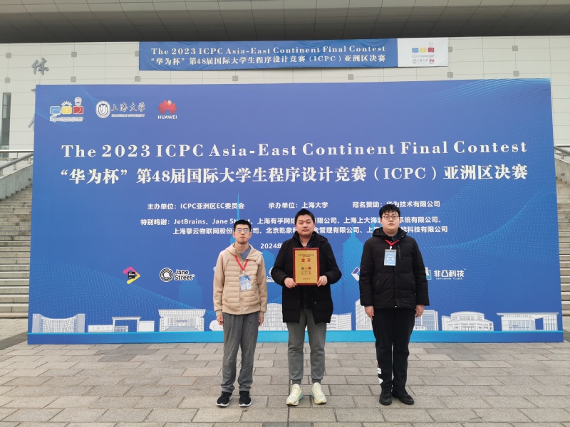 1月14日,“华为杯”第48届ICPC国际大学生程序设计竞赛亚洲区决赛在上海落下帷幕,我校计算机学院、软件学院、网络空间安全学院学生陈以信和贝尔英才学院学生何乐晗、赵一舟组成的代表队荣获金奖。本次比赛中,我校还获得铜奖1项、华为挑战赛一等奖1项以及优秀指导教师奖。