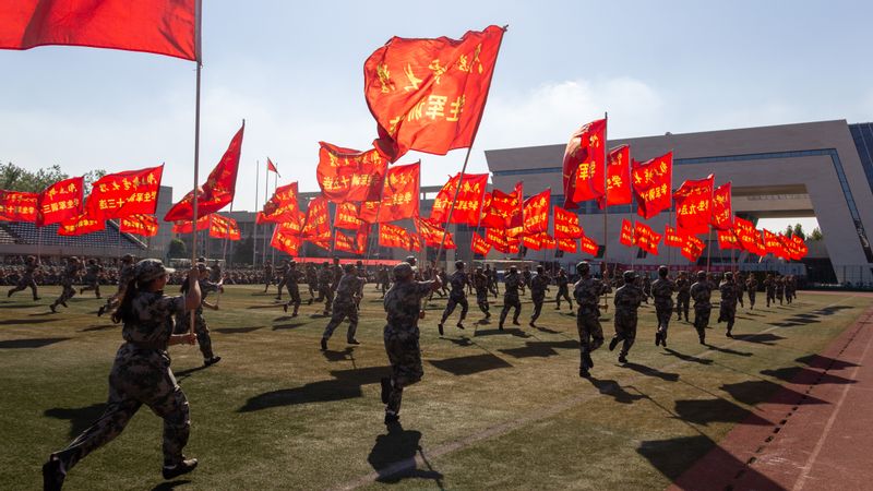 戎装上阵,英姿飒爽。叶美兰校长代表学校向承训部队赠送锦旗,并向部队的首长和同志们表示感谢。随后,叶校长下达军训成果汇报演出开始指令。