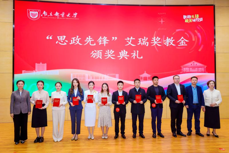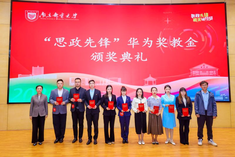 华为南京研究所招聘经理刘文旭、南京艾瑞集团董事长杨利霞、南京艾瑞集团市场部总监陈韩受邀出席“思政先锋”华为奖教金、艾瑞奖教金颁奖典礼,共同为获奖的18名辅导员颁奖。支持企业代表、兄弟高校代表、我校相关部门负责人和全体学工干部现场观摩。