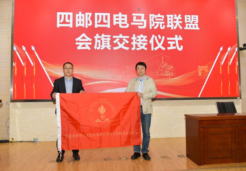 大会闭幕式上,分论坛点评人一一汇报,四邮四电马院联盟举行会旗交接仪式。