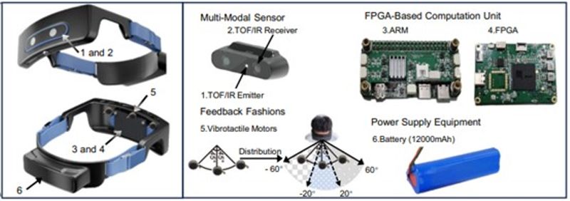 据世界卫生组织统计,全球约有超过10亿人患有不同程度的视力障碍或失明,这对其日常出行造成了严重影响。盲杖、导盲犬等传统辅助工具虽然在一定程度上发挥了作用,但在应对快速移动或突发障碍物等方面仍存在明显局限;尤其导盲犬资源稀缺、训练成本高,更限制了其大范围推广。随着传感器与人工智能技术的不断进步,基于智能穿戴设备的辅助方式逐渐受到关注,但当前多数避障设备仍难以兼顾高可靠性、低延迟、长续航与良好用户体验。