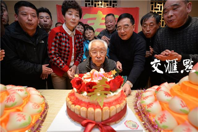 2017年1月15日,老红军秦华礼在晚辈们的祝福下迎来105岁寿辰。