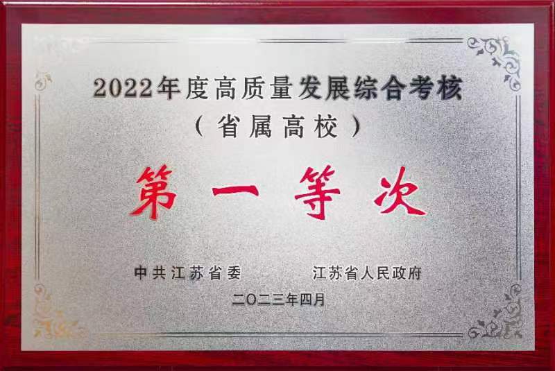 4月26日,江苏省2022年度高质量发展总结表彰会议在南京召开,我校获评省属高校高质量发展综合考核本科一类高校第一等次。