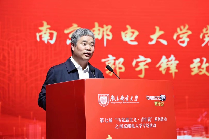 郭宇锋书记在致辞中表示,学校党委坚持以习近平新时代中国特色社会主义思想铸魂育人,统筹推进新时代马克思主义学院建设和思政课建设,持续擦亮红色校史“金字招牌”,拓宽思政育人“主渠道”,打造思政育人“新载体”,构建具有南邮特色的思想政治工作体系,取得了突出成效。他寄语广大南邮青年要把马克思主义中国化、时代化的最新成果学好、悟好、阐释好、运用好,做新时代马克思主义的坚定信仰者和忠实践行者,坚定理想、勇担使命、不畏困苦、不懈奋斗,在火热的青春中放飞人生梦想,在拼搏的青春中成就事业华章。