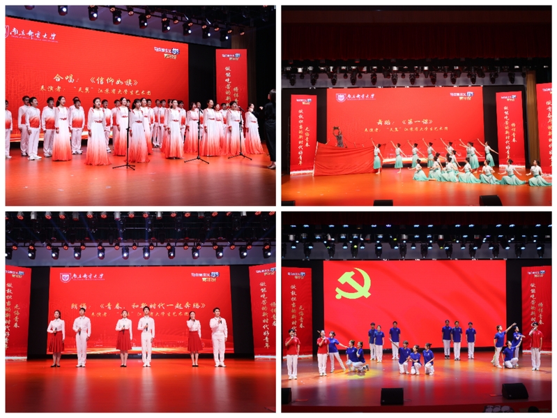 活动现场,“天翼”江苏省大学生艺术团通过合唱《信仰如旗》、舞蹈《第一课》、朗诵《青春,和新时代一起奔腾》及音诗画表演《我们,在这里起航》等节目,号召新时代南邮青年以先进青年榜样为标杆,用青春的能动力和创造力激荡起民族复兴的澎湃春潮,让青春在奋斗中绽放绚丽之花。