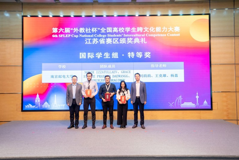 10月28-29日,第六届“外教社杯”全国高校学生跨文化能力大赛江苏省赛区比赛在常州举行。我校留学生Nodir Izzatullaev(乌兹别克斯坦籍),Grace Stevie Prayogo Daewangga (印度尼西亚籍)和Sobirjon Ibragimov(乌兹别克斯坦籍)组成的参赛队伍获国际学生组特等奖,并将代表江苏参加全国总决赛。这是继第四届、第五届大赛我校留学生团队以江苏省国际学生组第一名成绩进入国赛并两次获得总决赛友谊之桥奖以来,连续第三次晋级国赛。