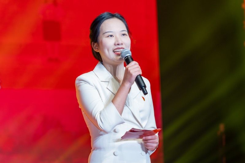 在“奋斗的青春”篇章中,创新创业、社会实践、志愿服务方面的先进集体与优秀个人代表上台领奖。2022级研究生王佳丽介绍了敢于拼搏、不断挑战,在创新创业、社会实践、志愿服务等领域释放青春激情、追逐青春理想的故事,她提到“在南邮这片沃土,人人皆可出彩,人人皆可成才”,展现了南邮学子求真学问、练真本领、锐意进取、勇于争先的青春追求。
