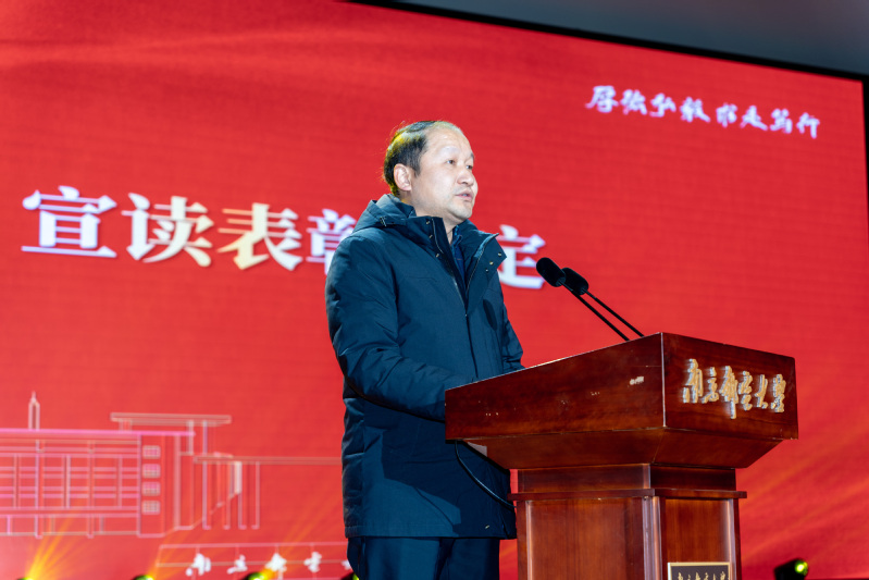 刘青山副校长宣读表彰决定。他指出,过去一年里,南邮学子志存高远、踔厉奋发,敢于拼搏、不断挑战,在学术科研、创新创业、社会实践、志愿服务等领域获得了丰硕成果,希望同学们把荣誉作为新的起点,把再创辉煌作为新的目标,向榜样学习、与榜样同行,珍惜韶华、砥砺奋进,学好专业知识,练就过硬本领。