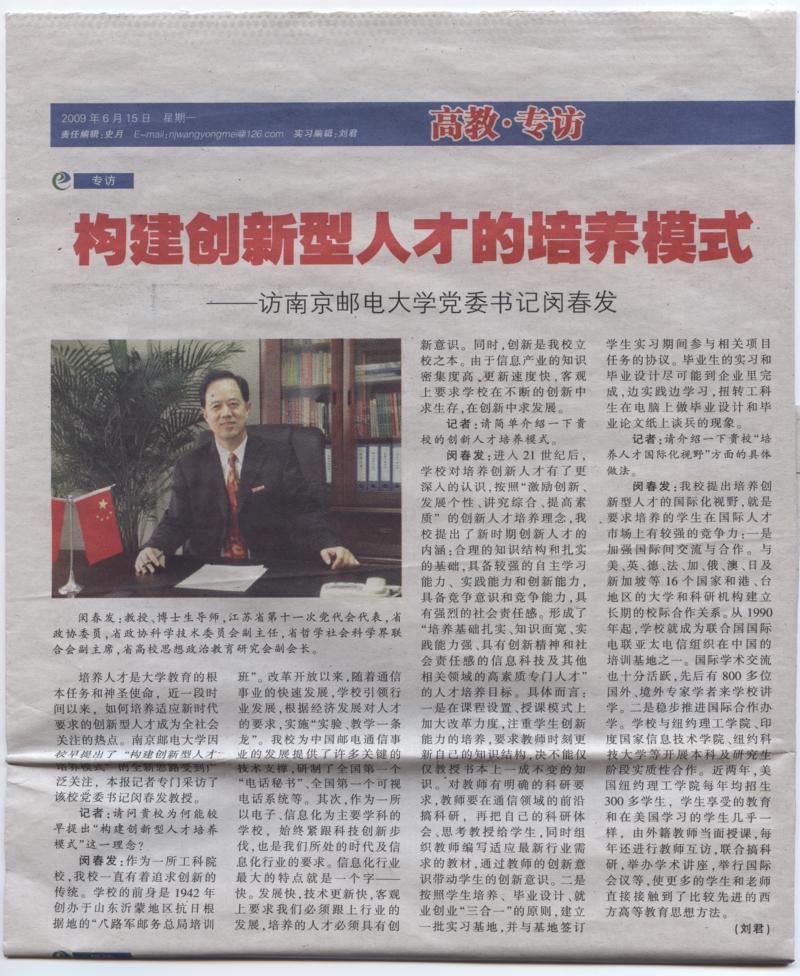 | 【江苏教育报】构建创新型人才的培养模式 |
