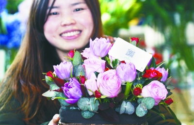 昨天,南京汉中路上的一家花店推出扫描花束中的一张二维码卡片,就可以收看到送花人的祝福视频这项业务。据了解,开发该软件的为南邮的研究生彭康和他的团队。这种送花附视频的模式一经推出,就赢得了众多消费者的青睐。