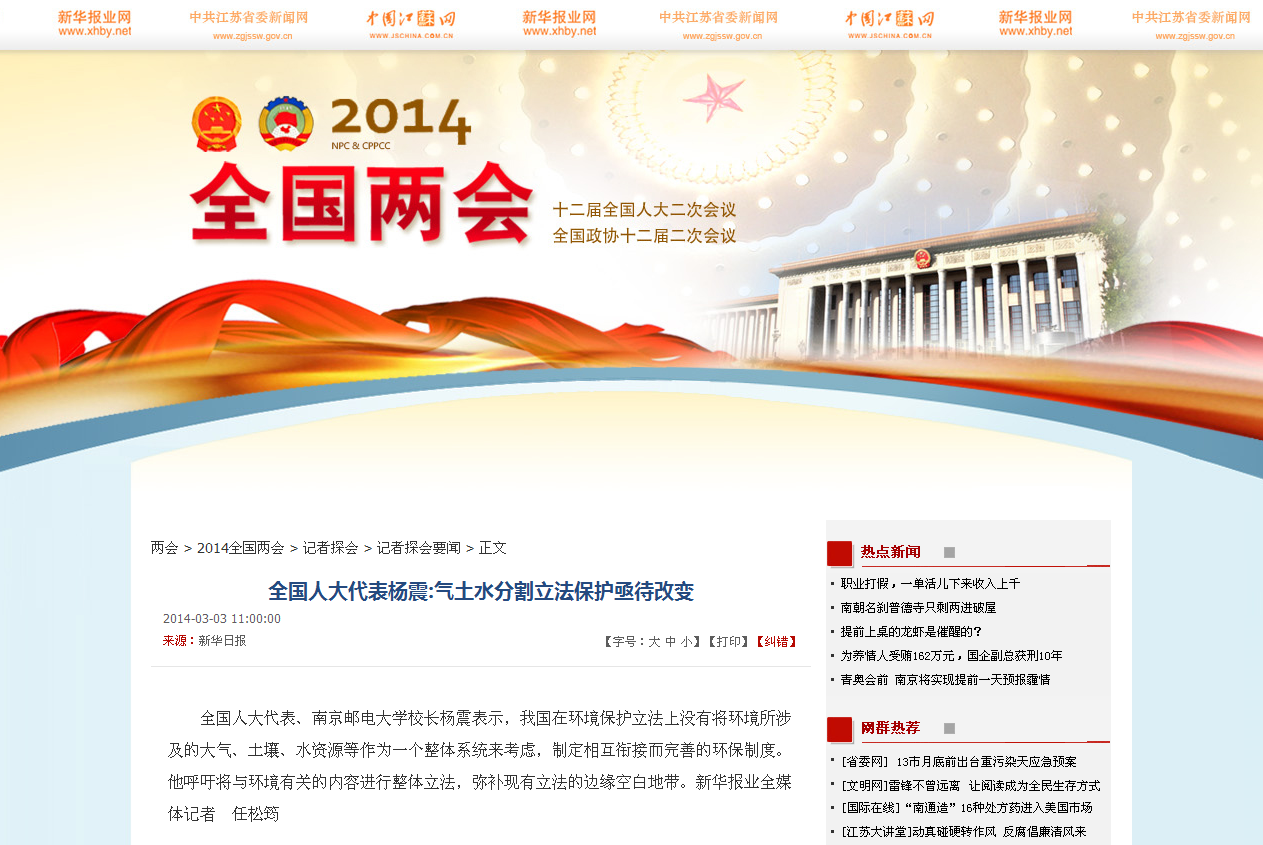 【新华日报】全国人大代表杨震:气土水分割立法保护亟待改变