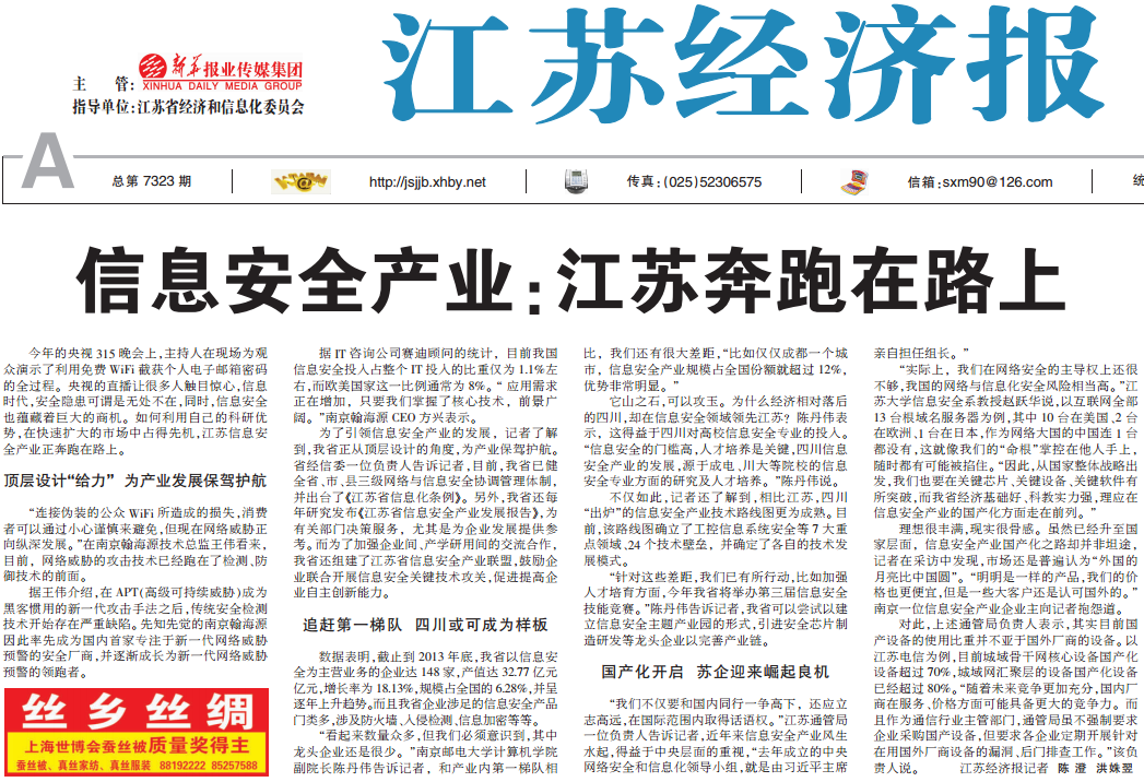 | 【江苏经济报】信息安全产业:江苏奔跑在路上 |