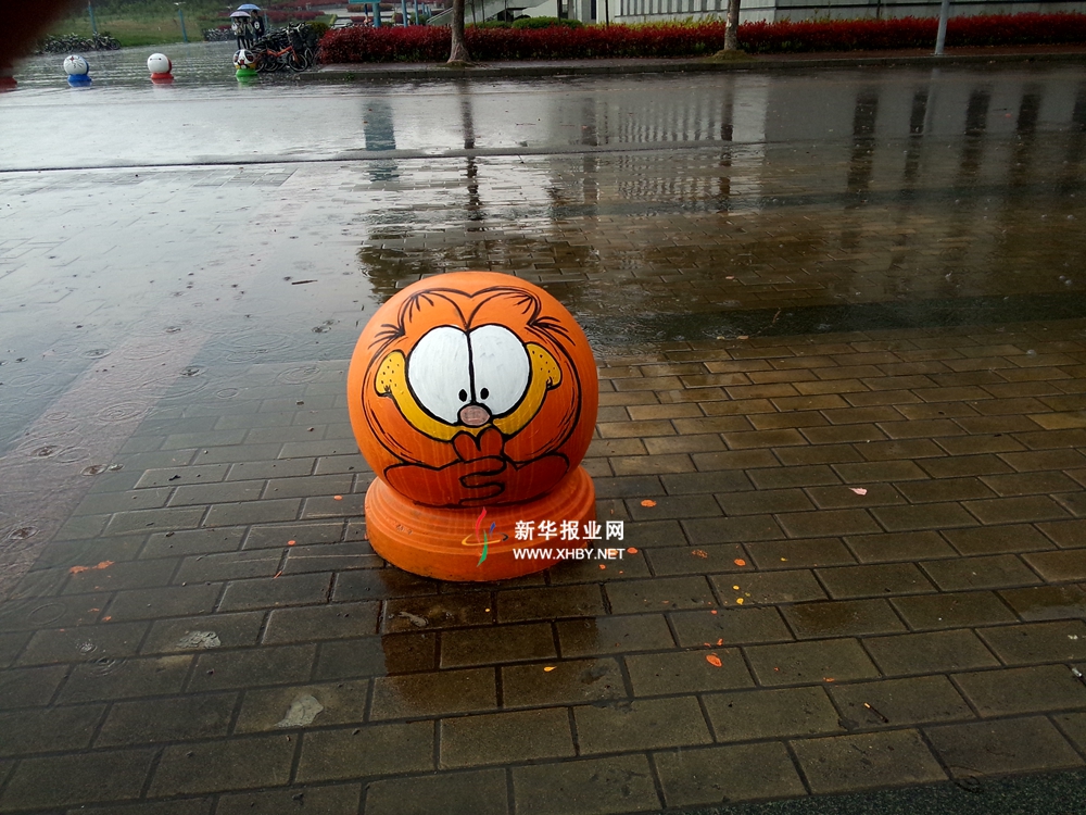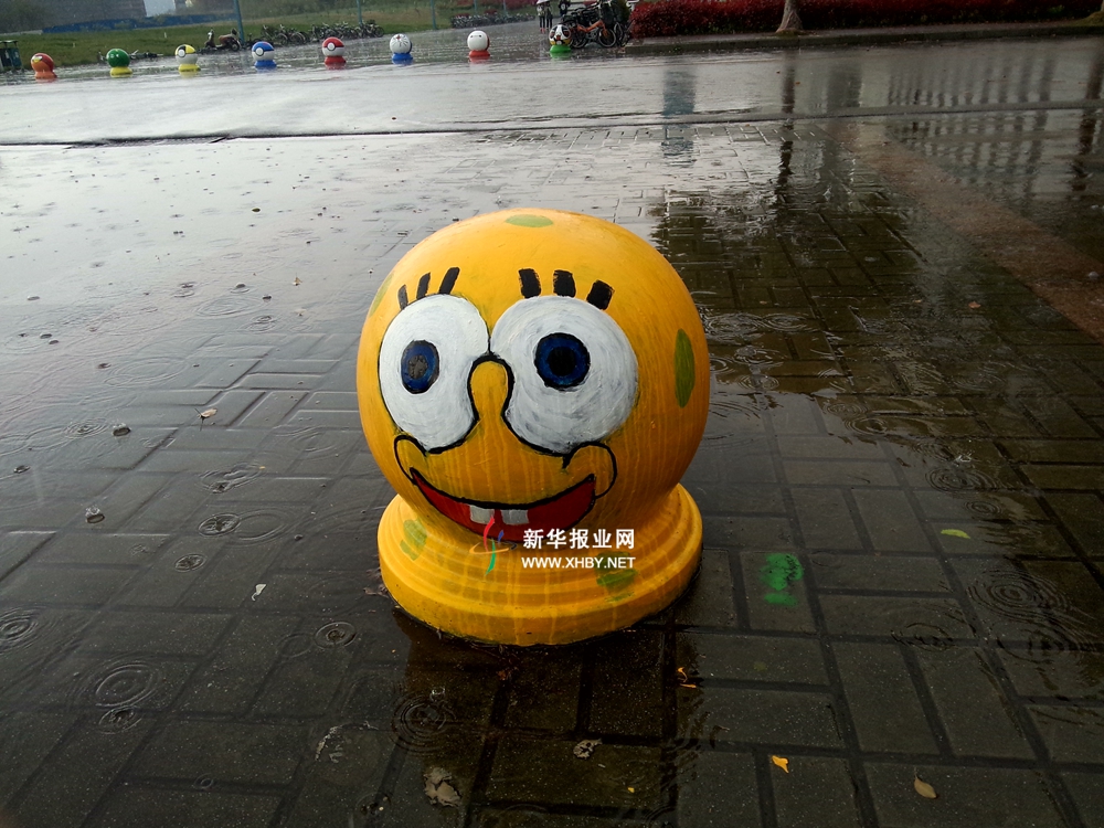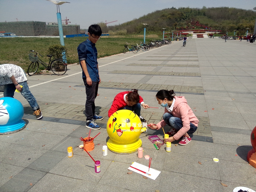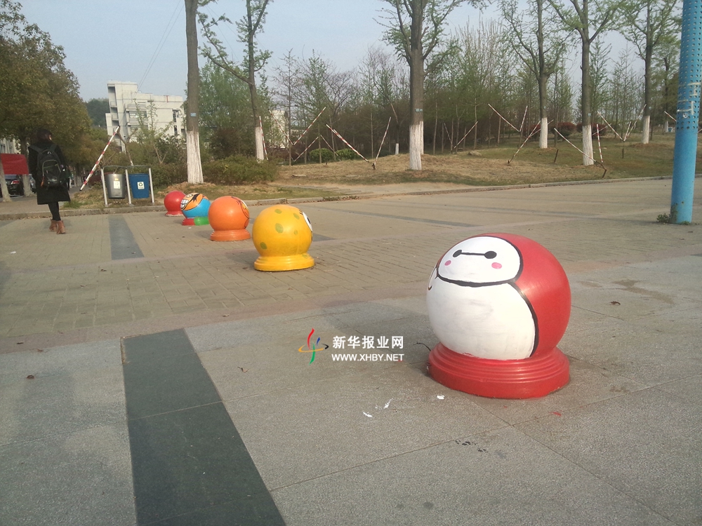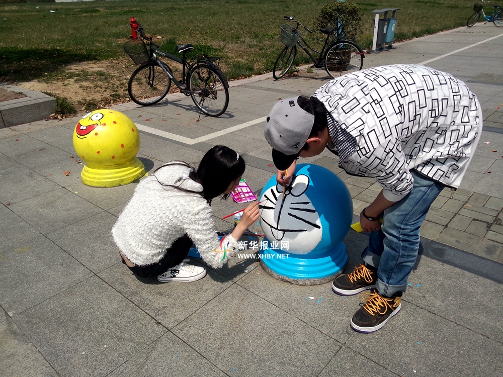 大白、机器猫、皮卡丘、龙猫……,这些可爱的卡通形象出现在了南京邮电大学的校园内。4月11日中午开始,南邮传媒与艺术学院的二十多位同学手持画笔,把校园里的路障球装扮得“萌萌哒”!据该院学生会主席朱林同学介绍说:“一个路障球需要花上4个小时才能装扮好。同学们积极性很高,从上午九点就开始画了。”