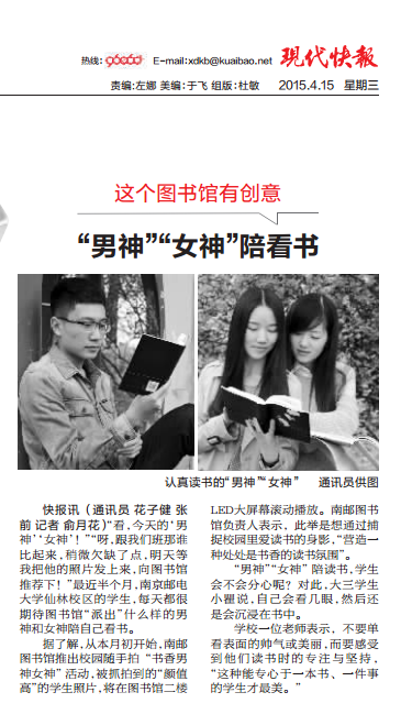 | 【现代快报】“男神”“女神”陪看书 |