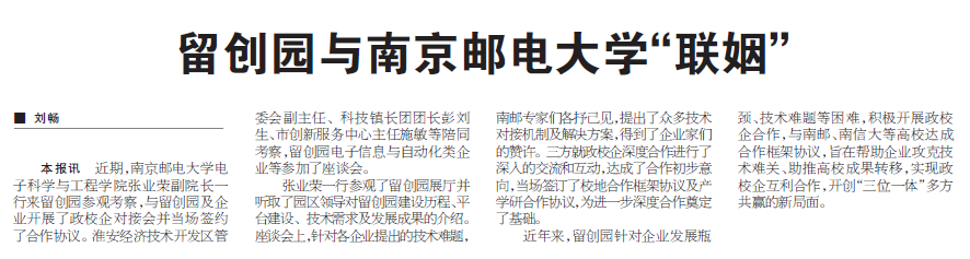 | 【淮安日报】留创园与南京邮电大学“联姻” |