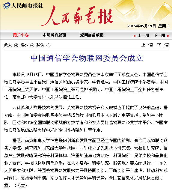 | 【人民邮电报】中国通信学会物联网委员会成立 |