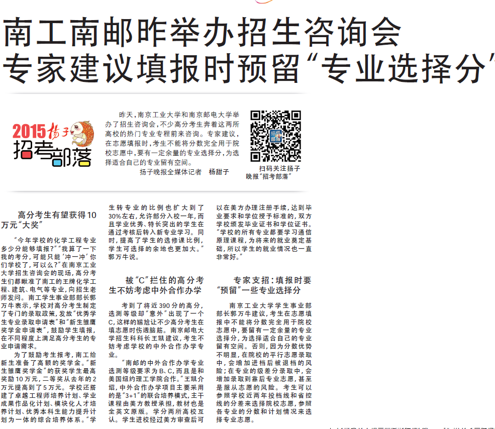 | 【扬子晚报】南工南邮昨举办招生咨询会 |