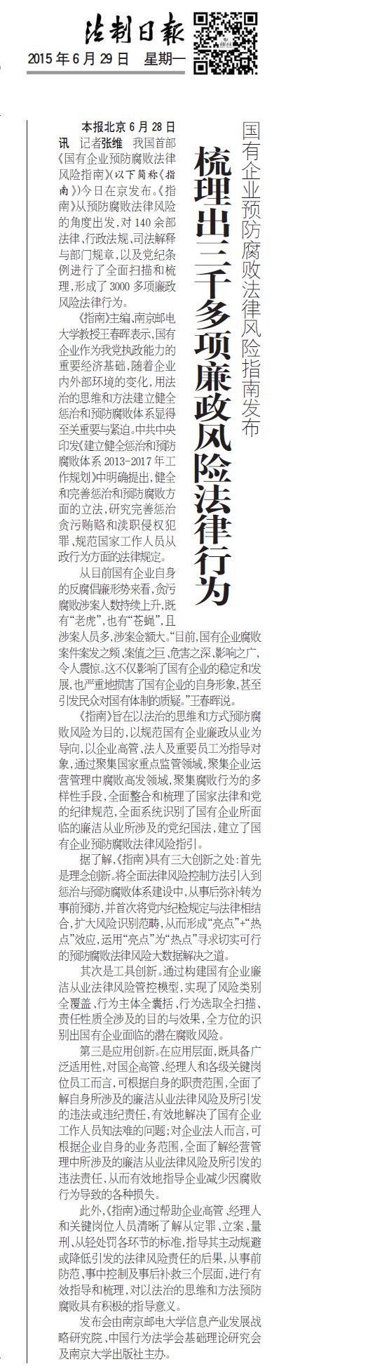 | 【法制日报】梳理出三千多项廉政风险法律行为 |
