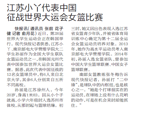 | 【现代快报】江苏小丫代表中国征战世界大运会女篮比赛 |