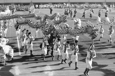 昨天,南京邮电大学举办校园田径运动会,近200名大学生集体舞龙,气势恢宏。孔雀开屏、龙出宫、大横八字……龙狮队精神抖擞地做出很多高难度动作,令人目不暇接。据悉,南邮龙狮队曾多次参加国家级和省内龙狮精英赛,连续多次捧回冠军奖杯。