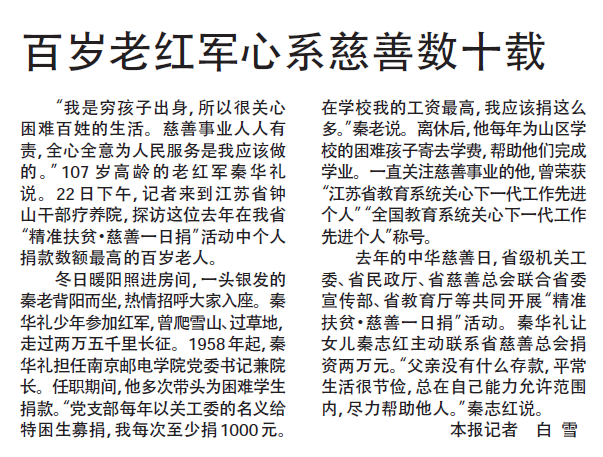 | 【新华日报】百岁老红军心系慈善数十载 |