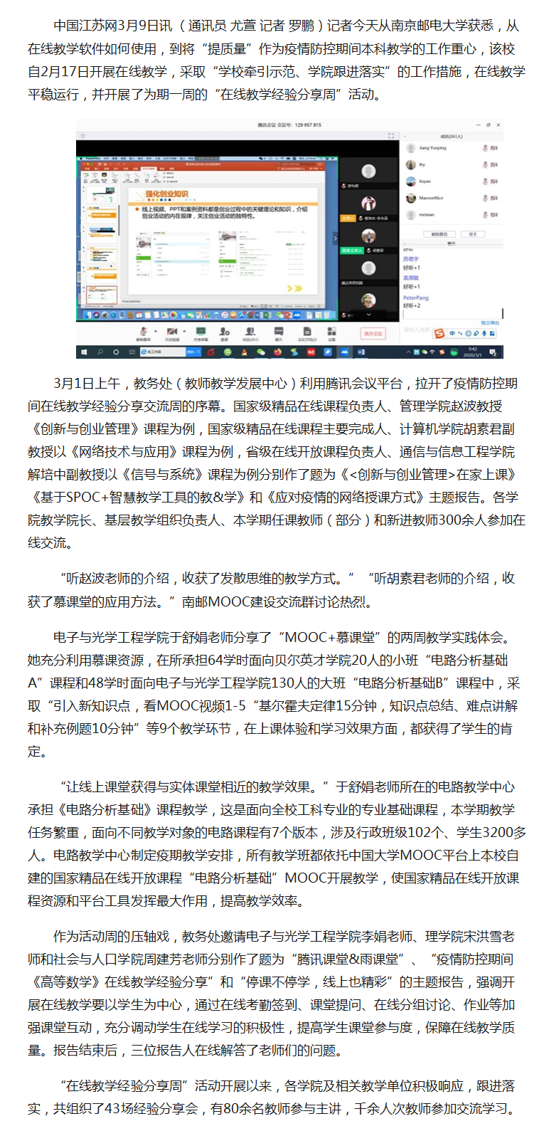 | 【中国江苏网】南邮开展在线教学“提质”经验分享活动 |