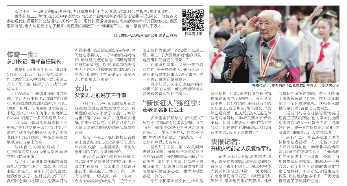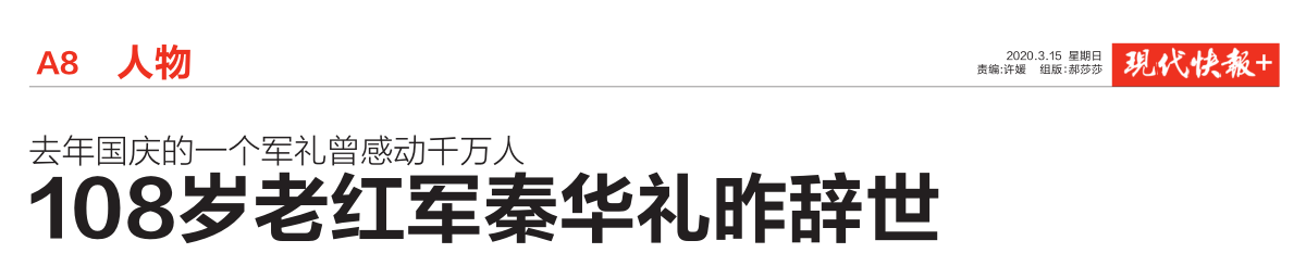 | 【现代快报】108岁老红军秦华礼昨辞世 |