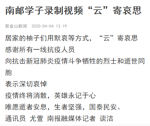| 【紫金山】南邮学子录制视频“云”寄哀思 |