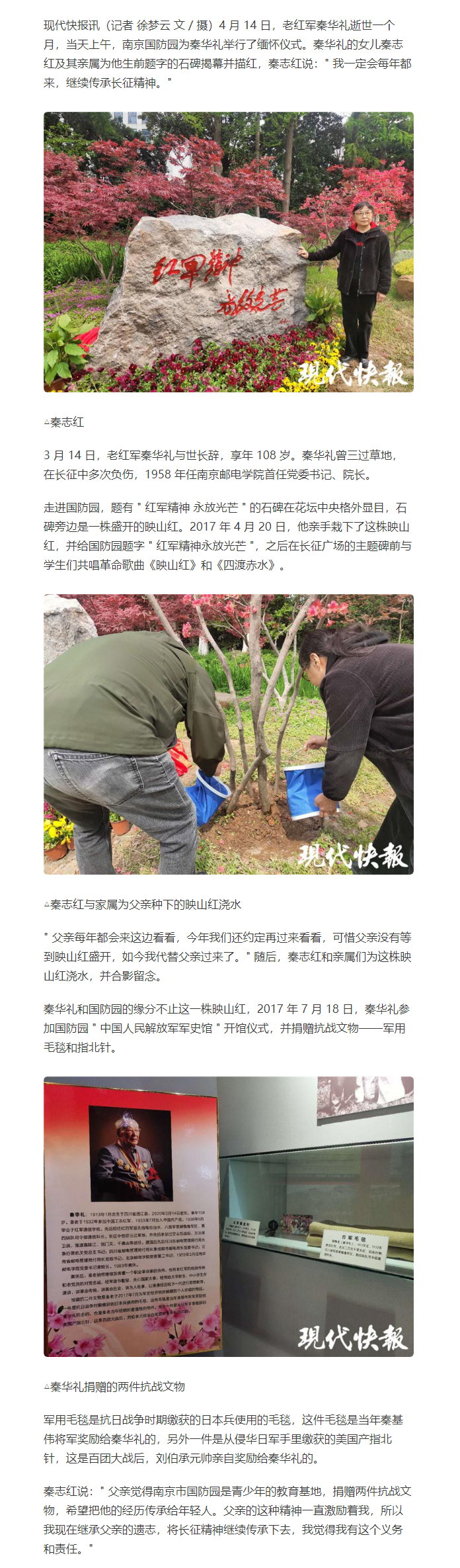 | 【现代快报全媒体】老红军秦华礼缅怀仪式在南京国防园举行,女儿:我会继续传承父亲的长征精神 |