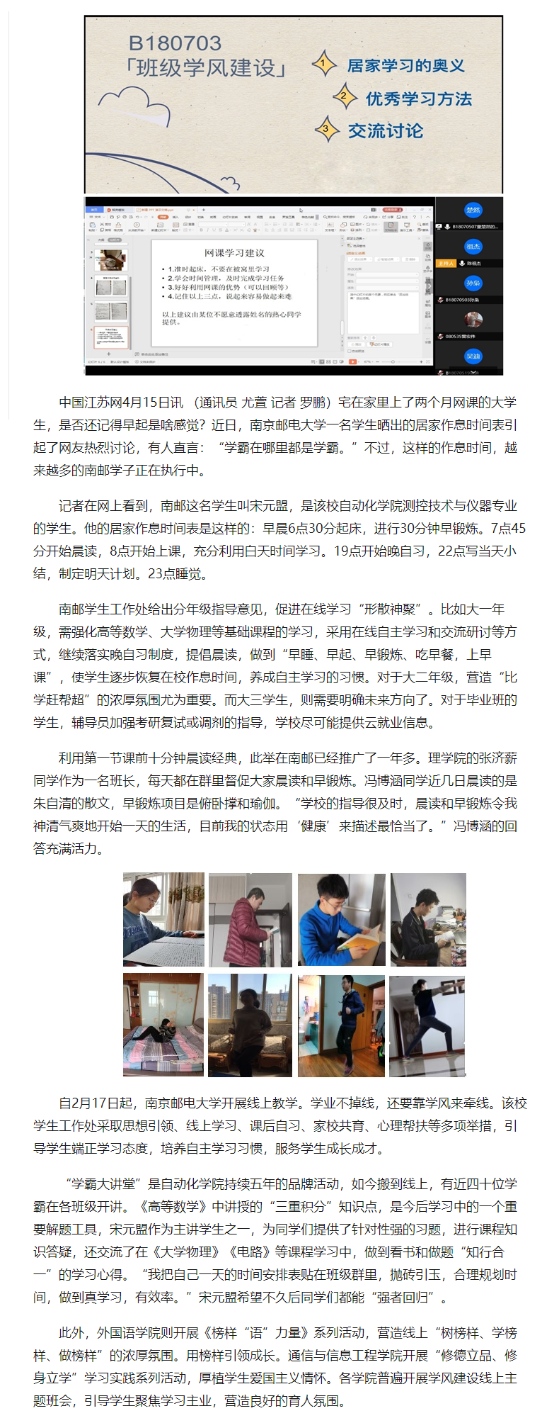 | 【中国江苏网】南邮:在线促进良好学风 强者“永不掉线” |