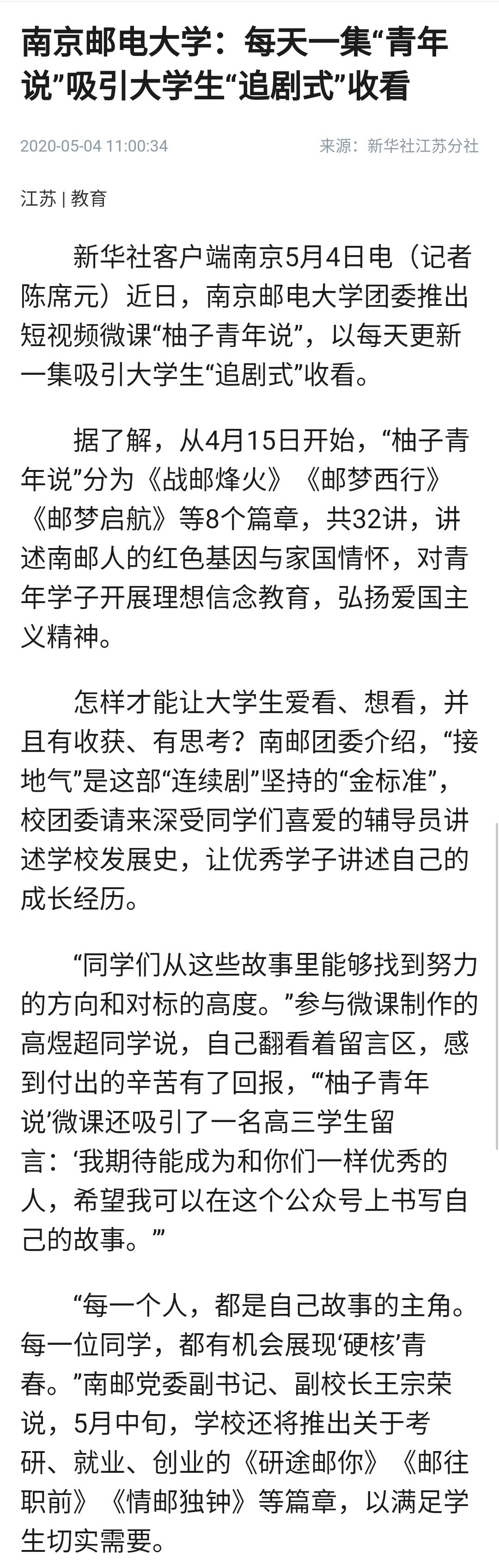 | 【新华社客户端】南京邮电大学:每天一集“青年说”吸引大学生“追剧式”收看 |