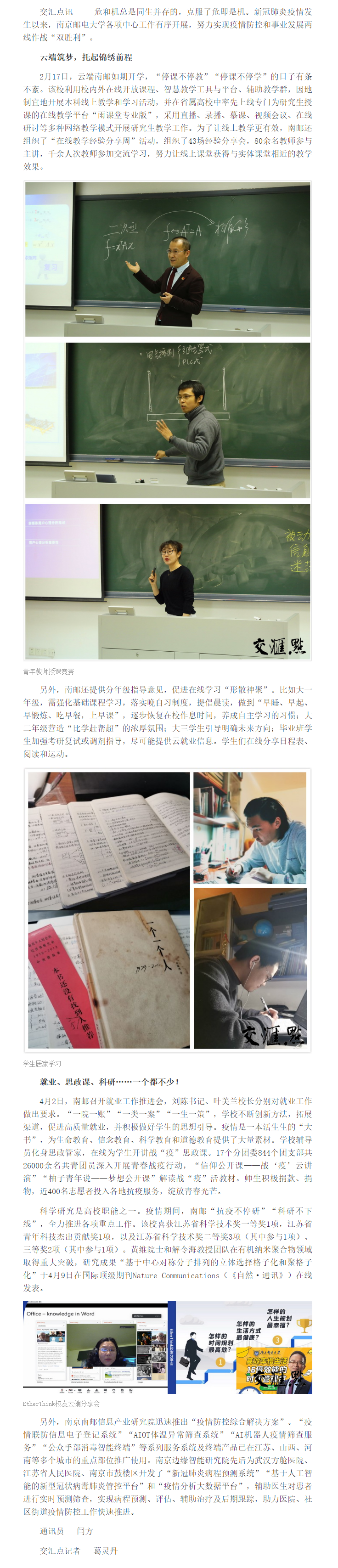 | 【交汇点】南京邮电大学:疫情防控和事业发展“双胜利” |