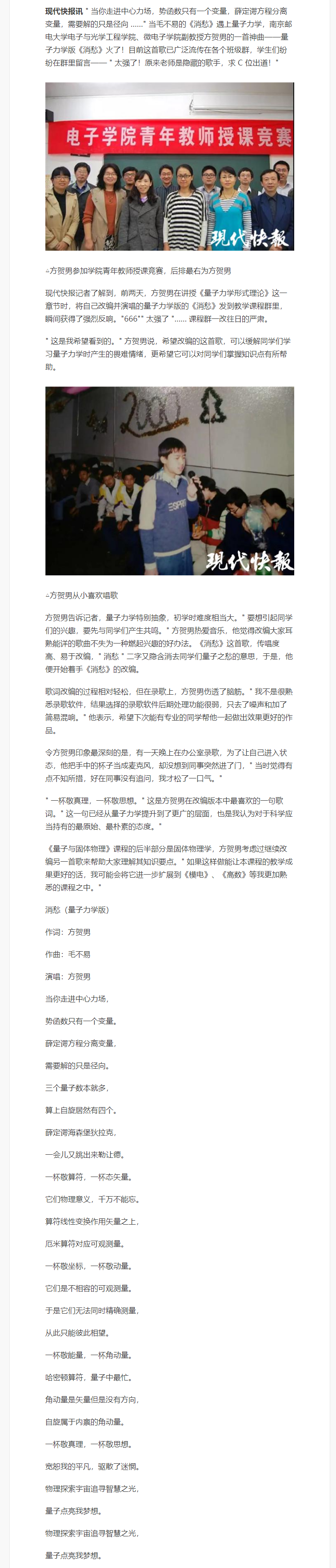| 【现代快报网】“一杯敬坐标,一杯敬动量!”南京高校教师创作量子力学版《消愁》火了 |